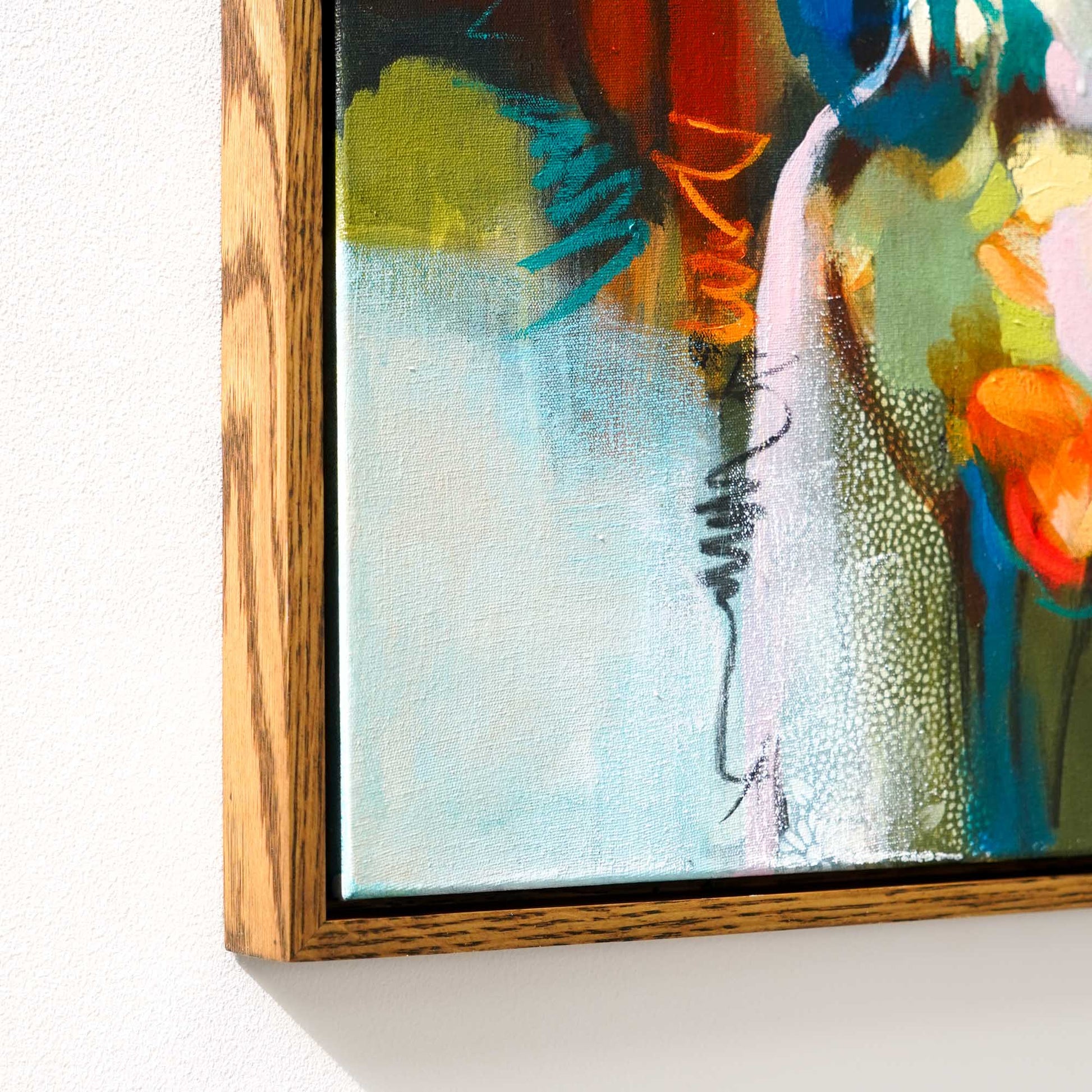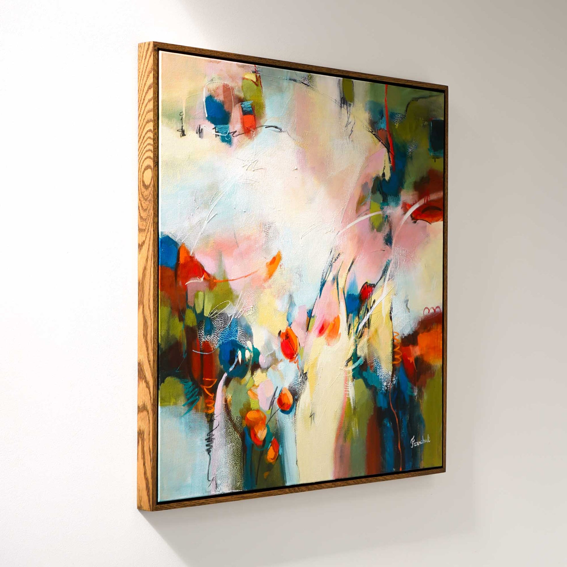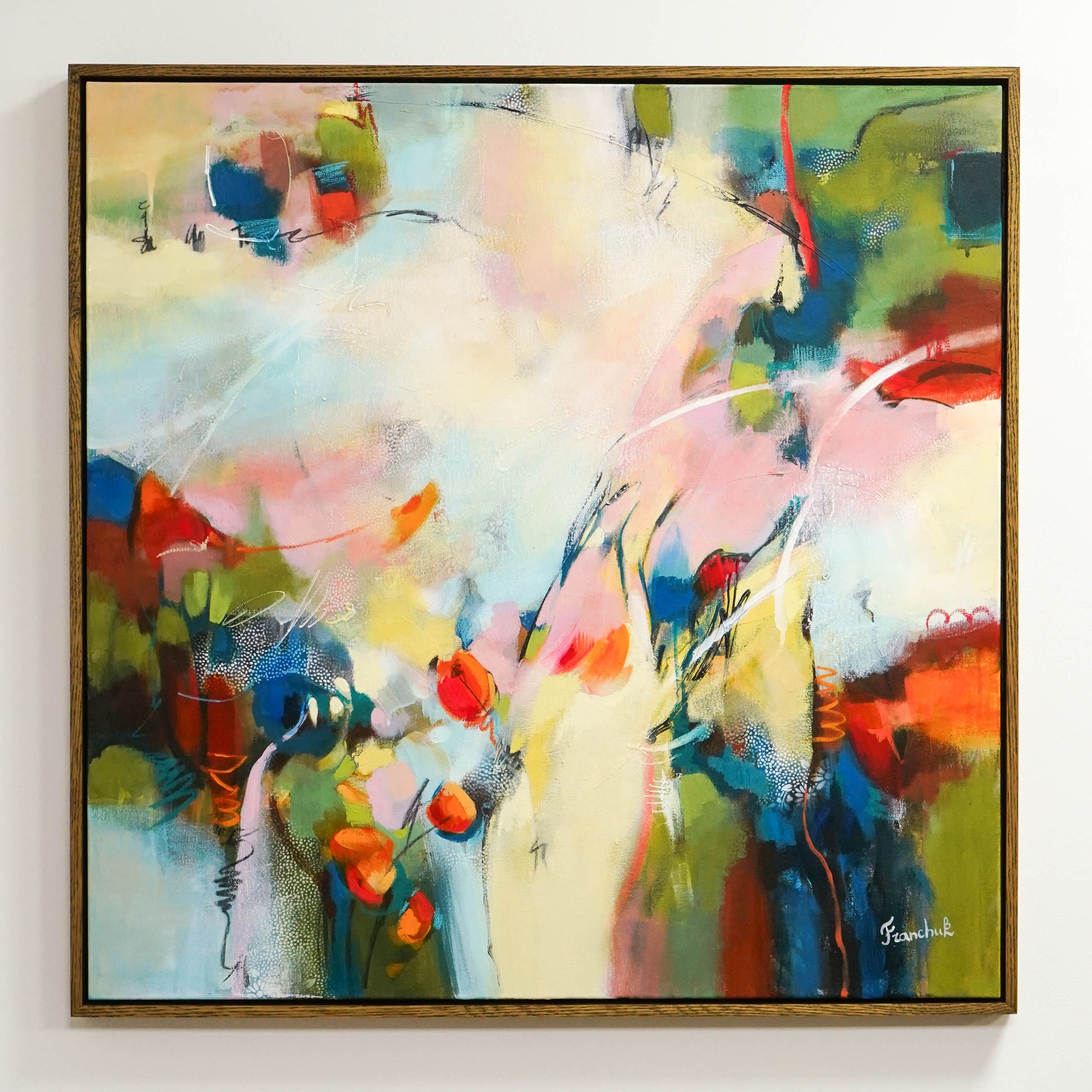 30*30" / 76.2*76.2cm Mixed Media Oil Painting on Gallery Wrapped Canvas, framed in brown oak, 2024