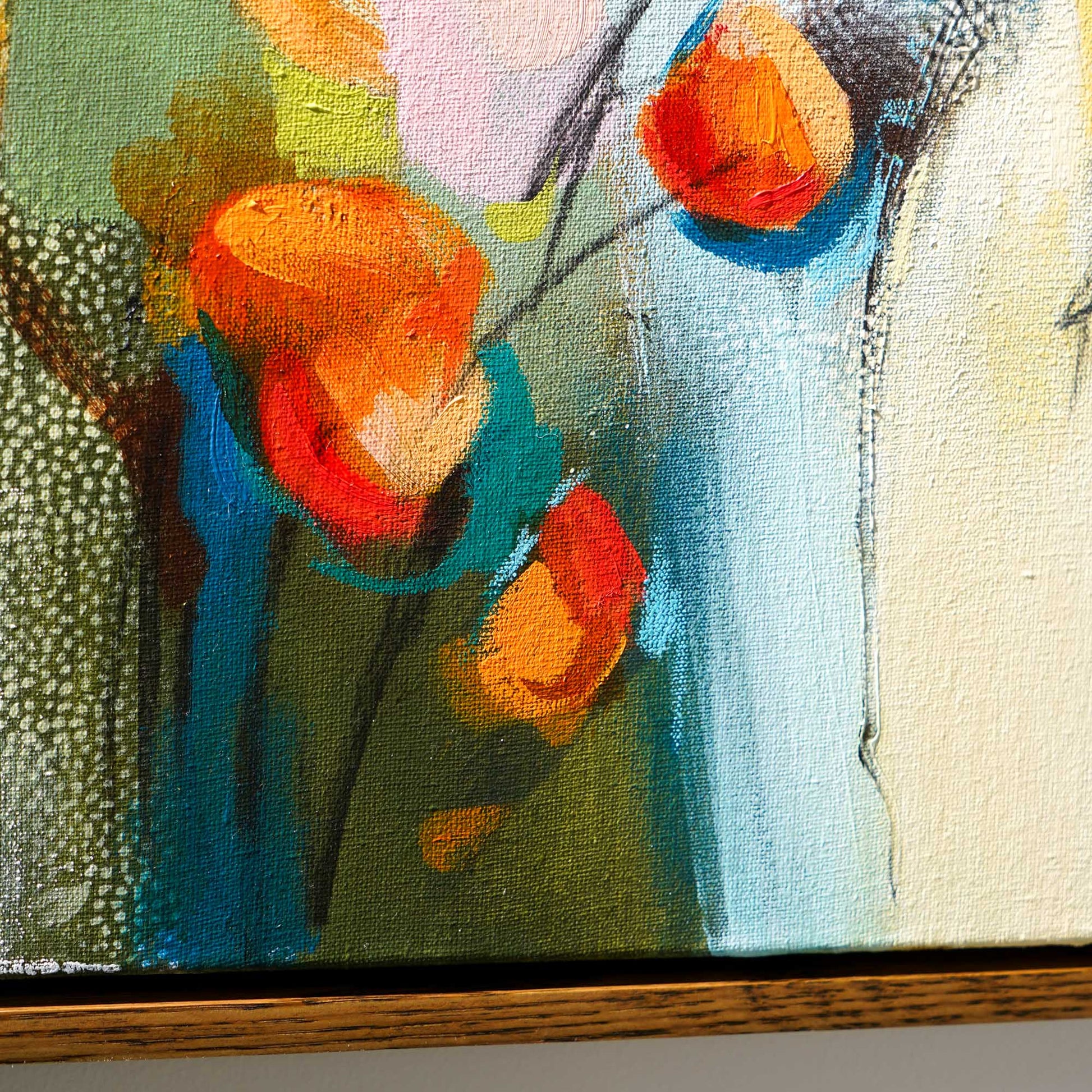 This painting means more than I can explain- after the death of my husband, I purchased a new, smaller, much less “grand” home. I’ve been working hard to make it feel like home, and when I saw this painting (coincidentally titled “Dwelling Place”), I knew it was just what I needed to complete my cozy entryway. The colors are happy, yet peaceful, and I love the way it greets me and everyone who walks through the door. I was impressed with the speed of delivery as well as the packaging of the painting. Esther also provided stretching/ framing advice, and the process was easier and less expensive than I’d anticipated. I am thrilled with every aspect of this purchase!