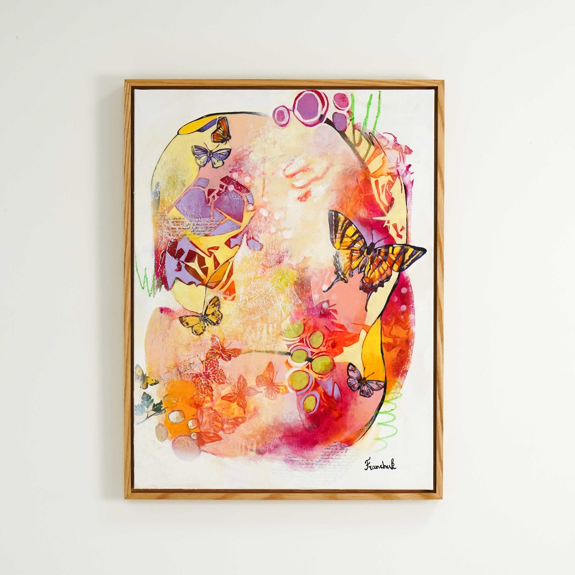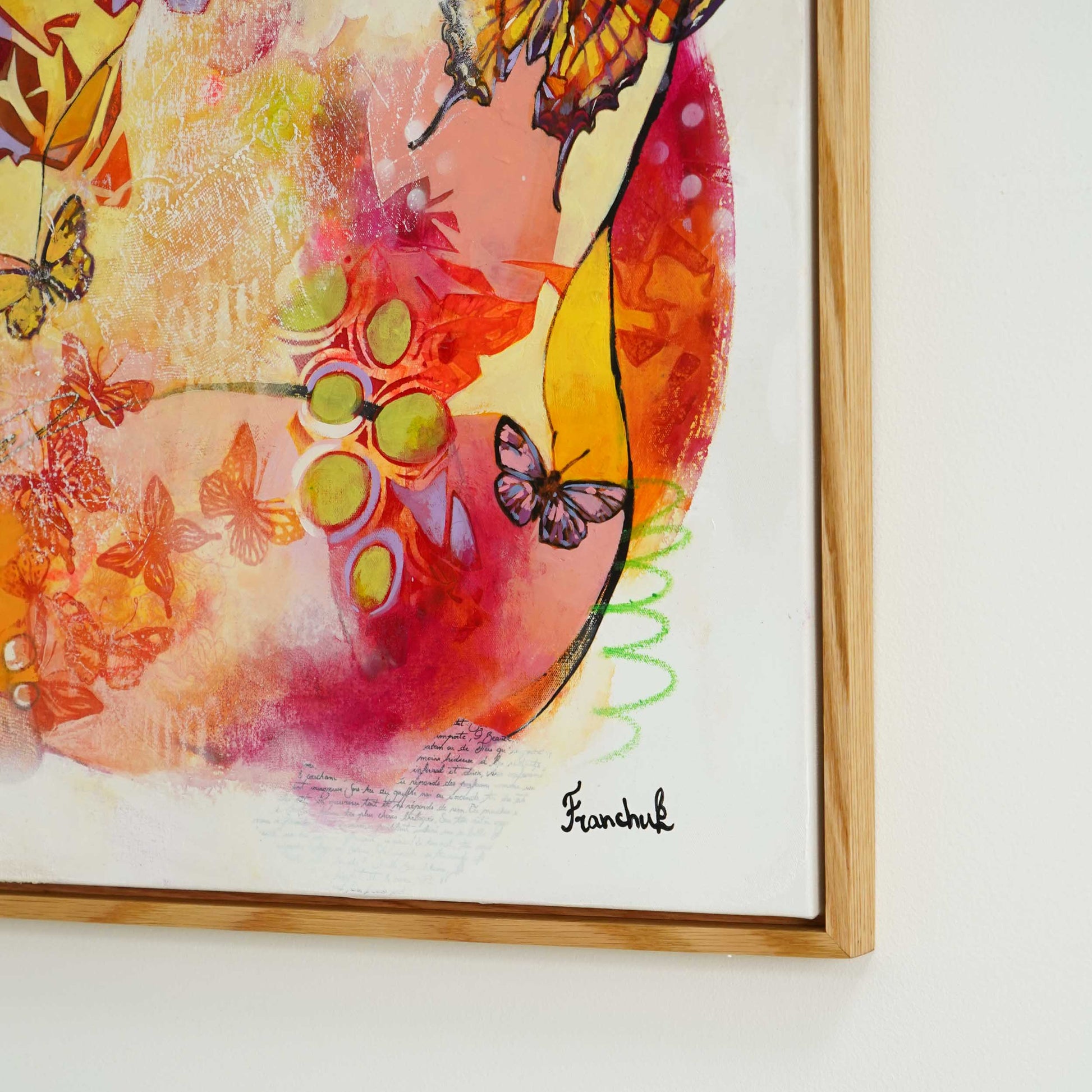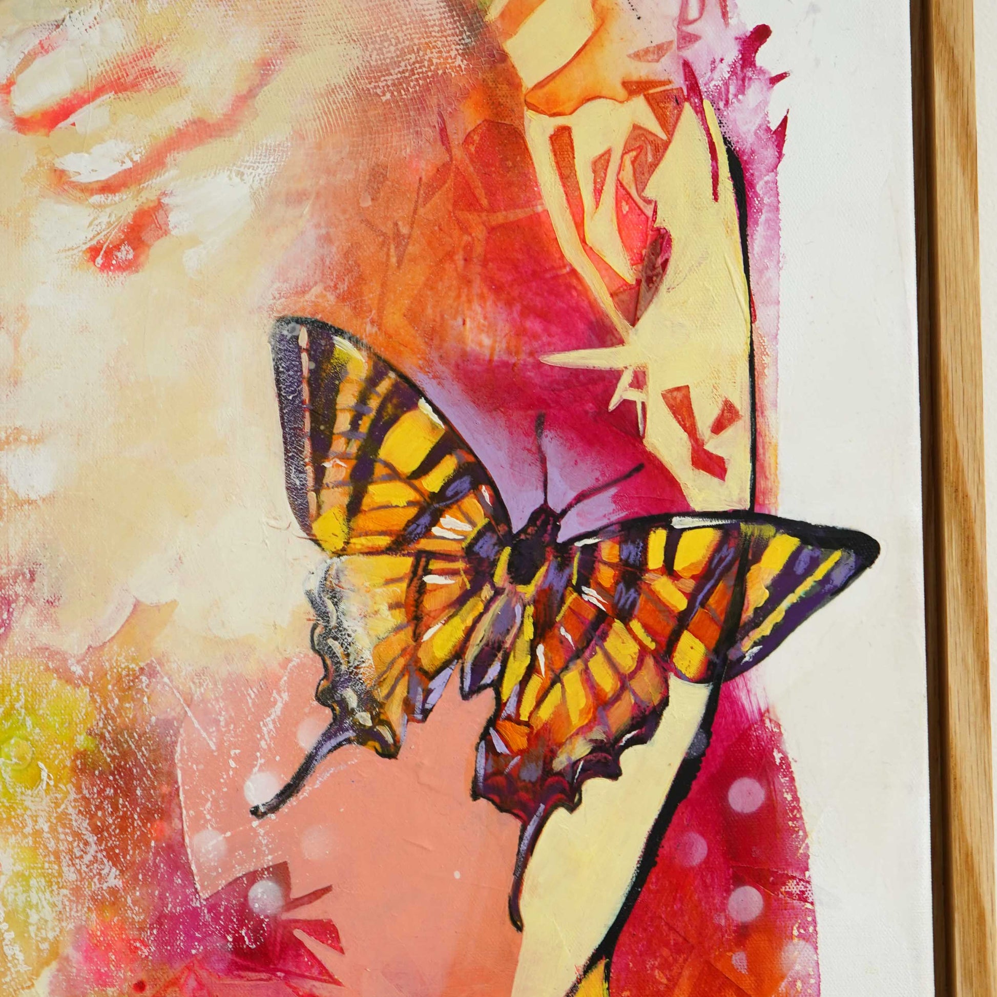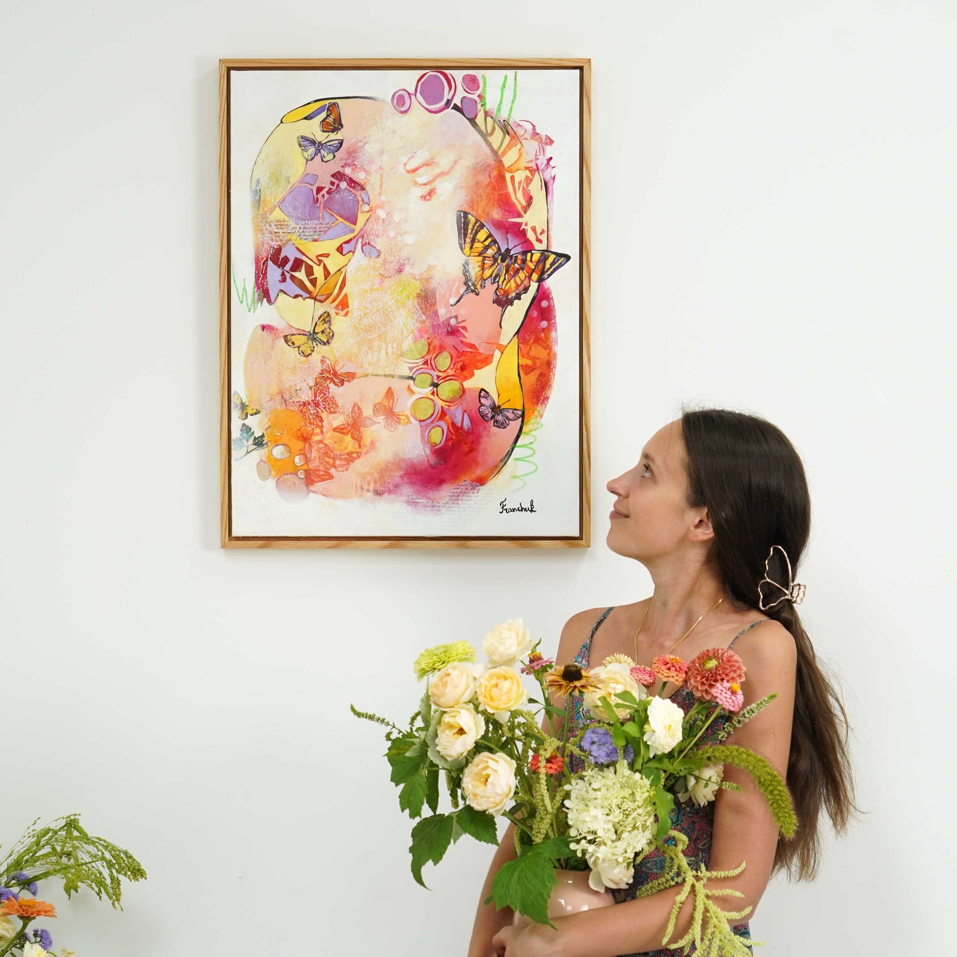 This piece is truly meaningful regarding my journey. You are a true inspiration for me. I can feel many emotions in this masterpiece! Butterflies are following the light, the sun, the positive energy! I love the way you paint your subjects, the way you include mixed media, the texture, etc... When I see your paintings, I see beauty, love, freedom and a huge feeling of serenity. Your art brings me peace into my heart anf heal my soul... many thanks Esther to do what you do. I can't wait to see more into your bright future! xx