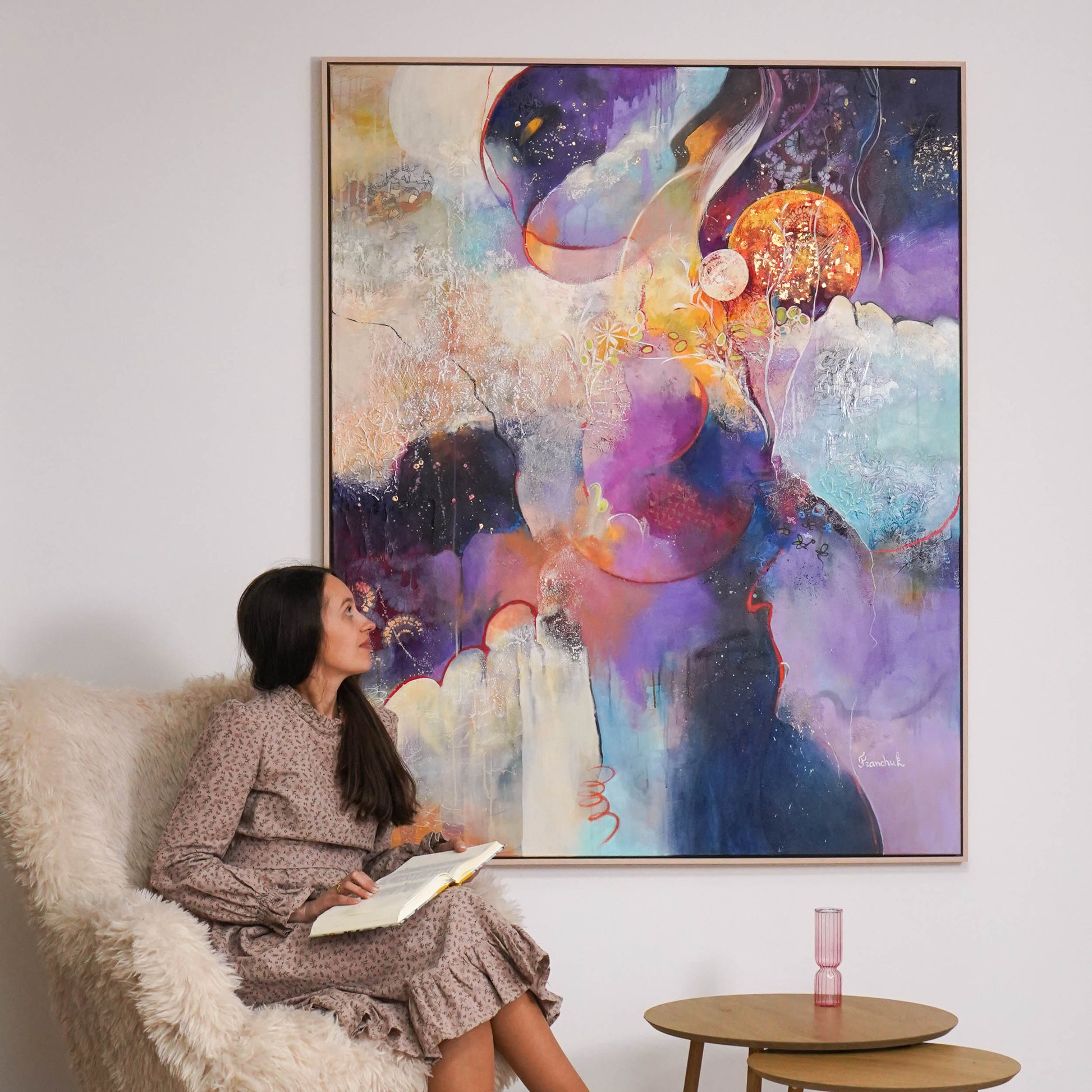 I am in love with this painting! "Arise, Love" is truly a masterpiece. I am astounded by the color story and composition of this piece. It arrived to the US from Ukraine very quickly and was well packaged. It is even better in person. I also received a certificate of authenticity and very sweet note. The oak frame is perfect for it. I absolutely love this abstract series and hope to see more of them in the future! Thank you so much for such an incredible work of art. I will cherish it forever! ❤️