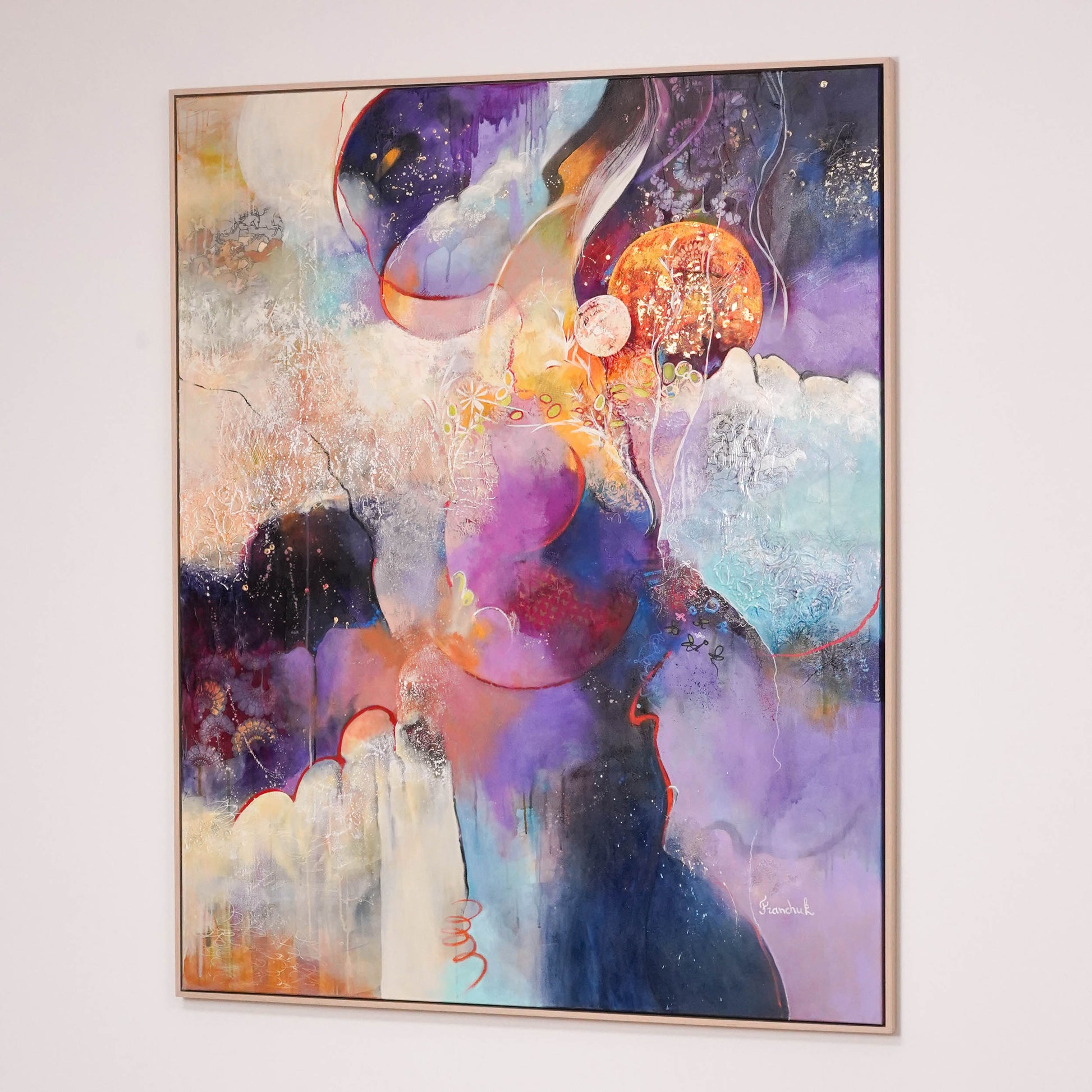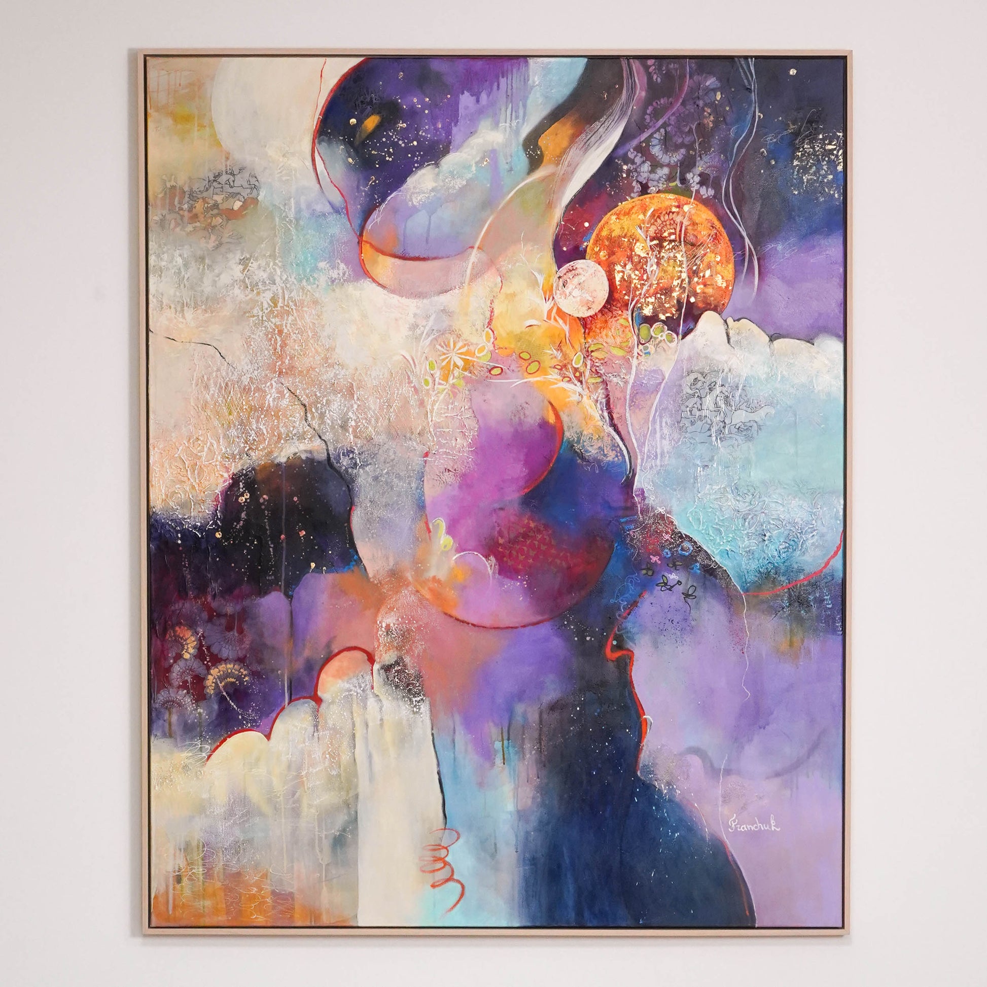 48*60" / 122*152.4cm Mixed Media Oil Painting on Gallery Wrapped Canvas, framed in white oak floater frame, 2025