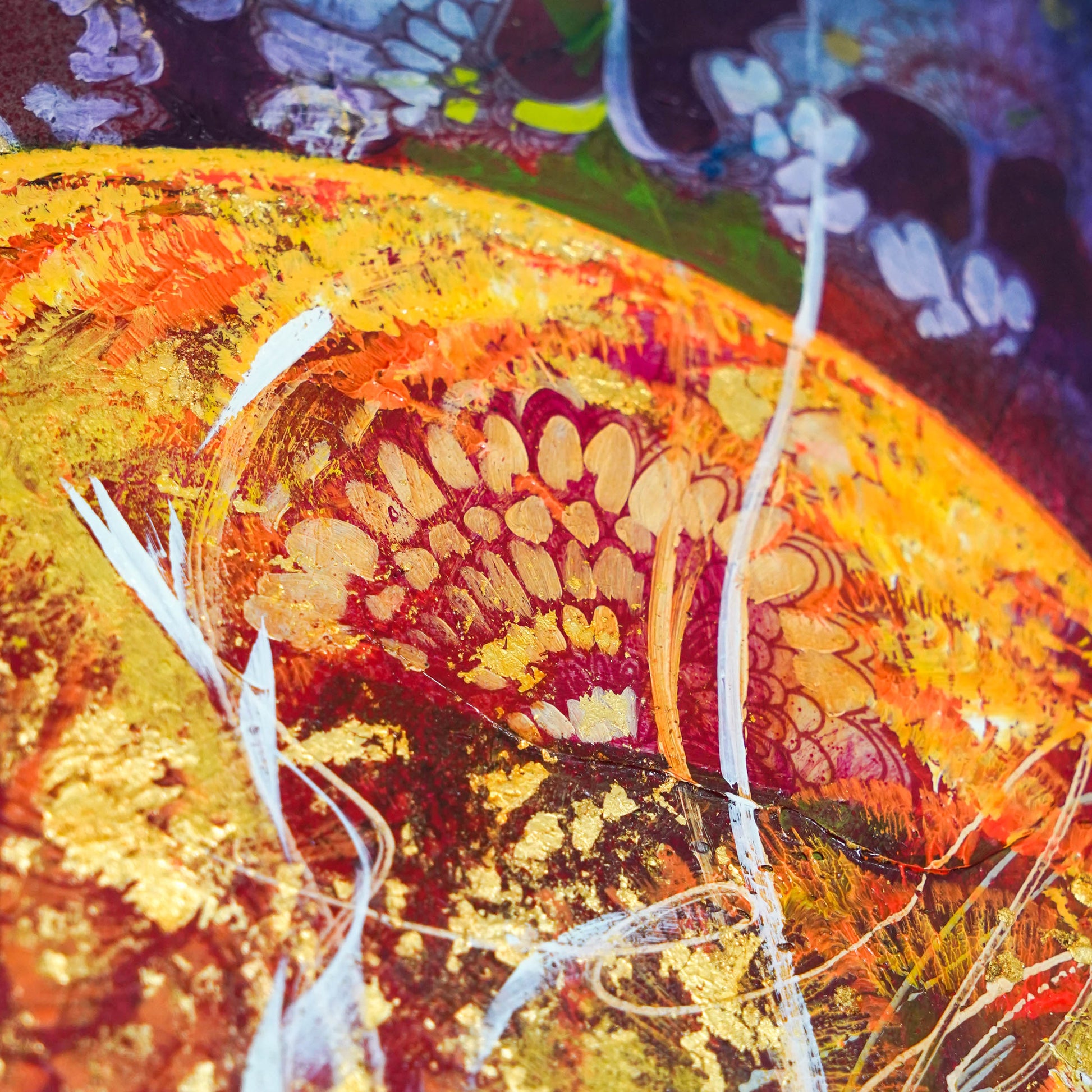 This piece is truly meaningful regarding my journey. You are a true inspiration for me. I can feel many emotions in this masterpiece! Butterflies are following the light, the sun, the positive energy! I love the way you paint your subjects, the way you include mixed media, the texture, etc... When I see your paintings, I see beauty, love, freedom and a huge feeling of serenity. Your art brings me peace into my heart anf heal my soul... many thanks Esther to do what you do. I can't wait to see more into your bright future! xx