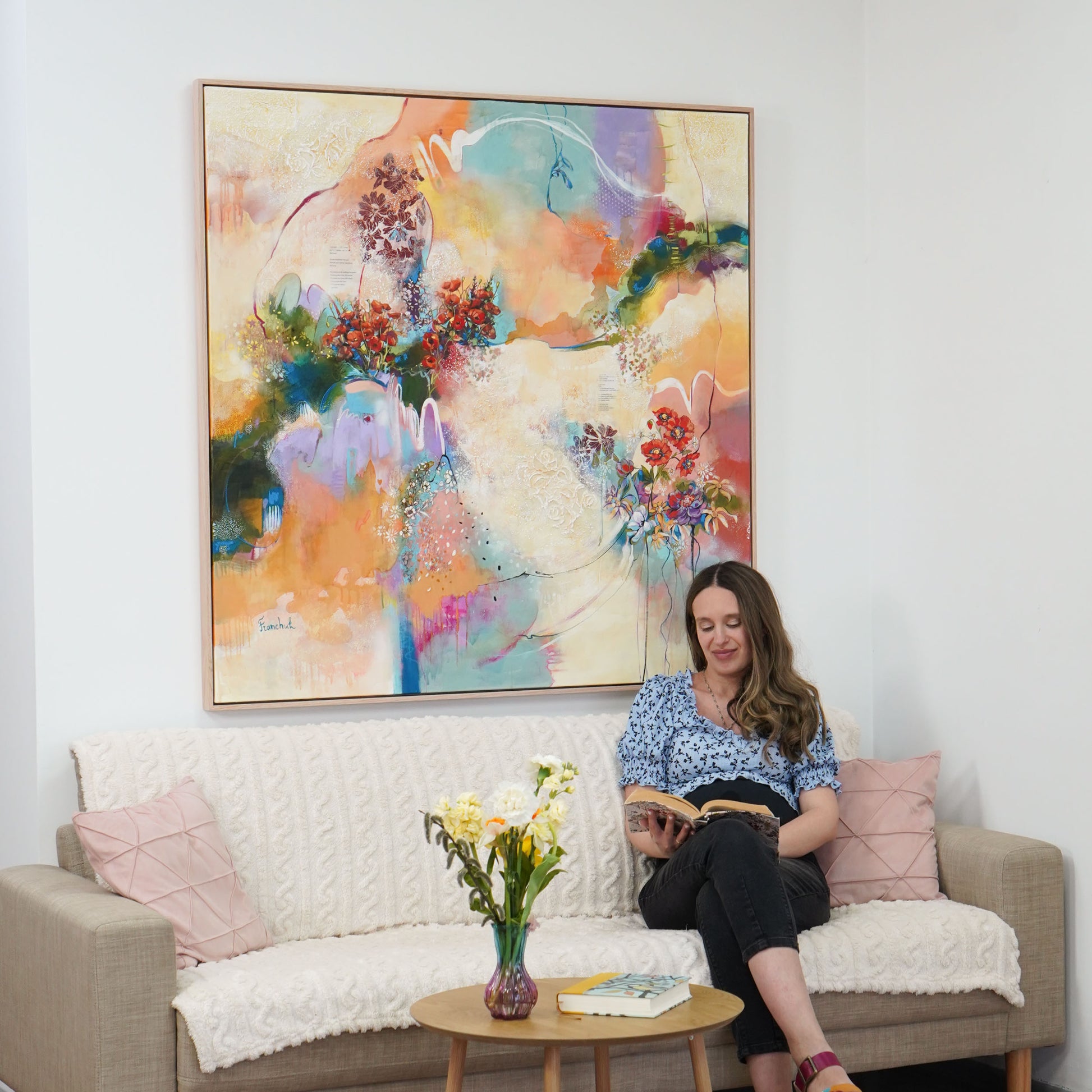 I completely fell in love with this painting by the amazingly talented artist Esther Franchuk when I first saw it on her website. I kept coming back to it and pausing and smiling. I ordered it and was delight That it arrived so carefully packaged. It is even more beautiful in person. I love it so much! Thank you Esther, for your beautiful work and the love that you put into it.