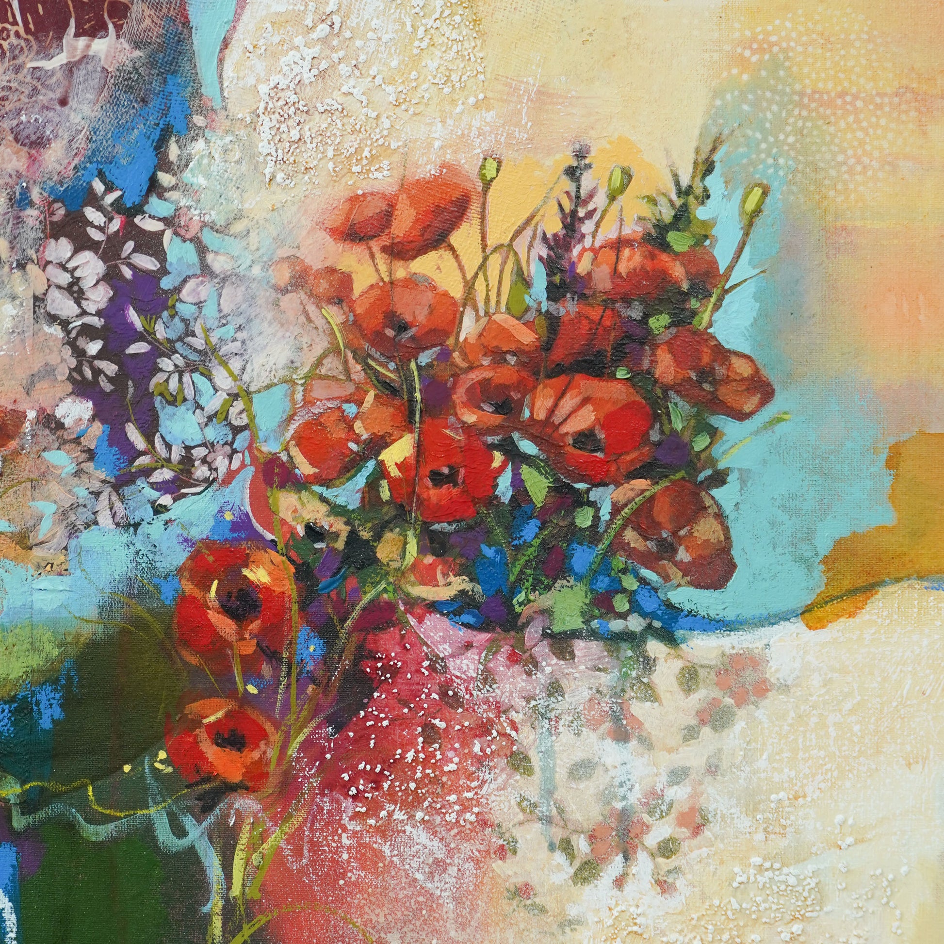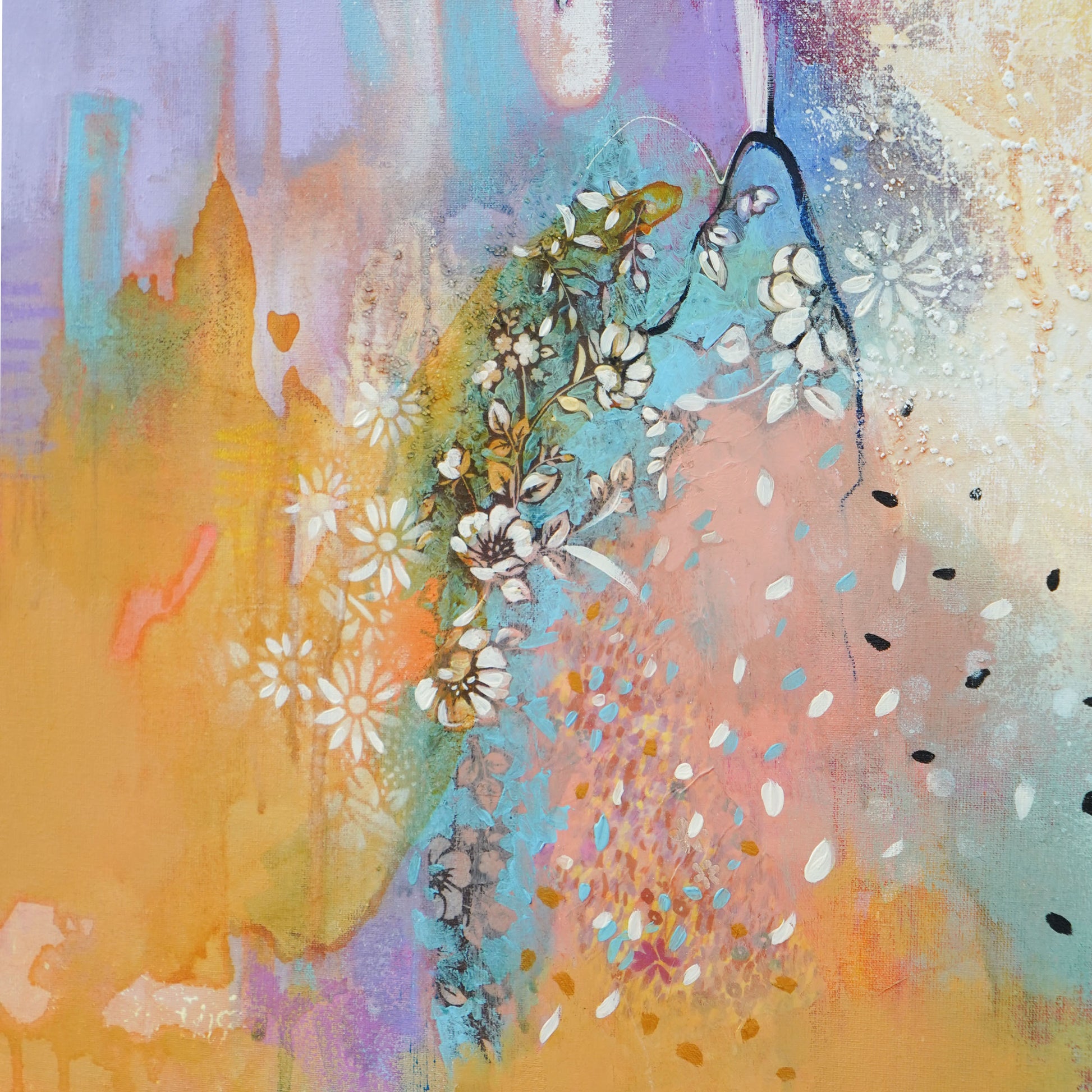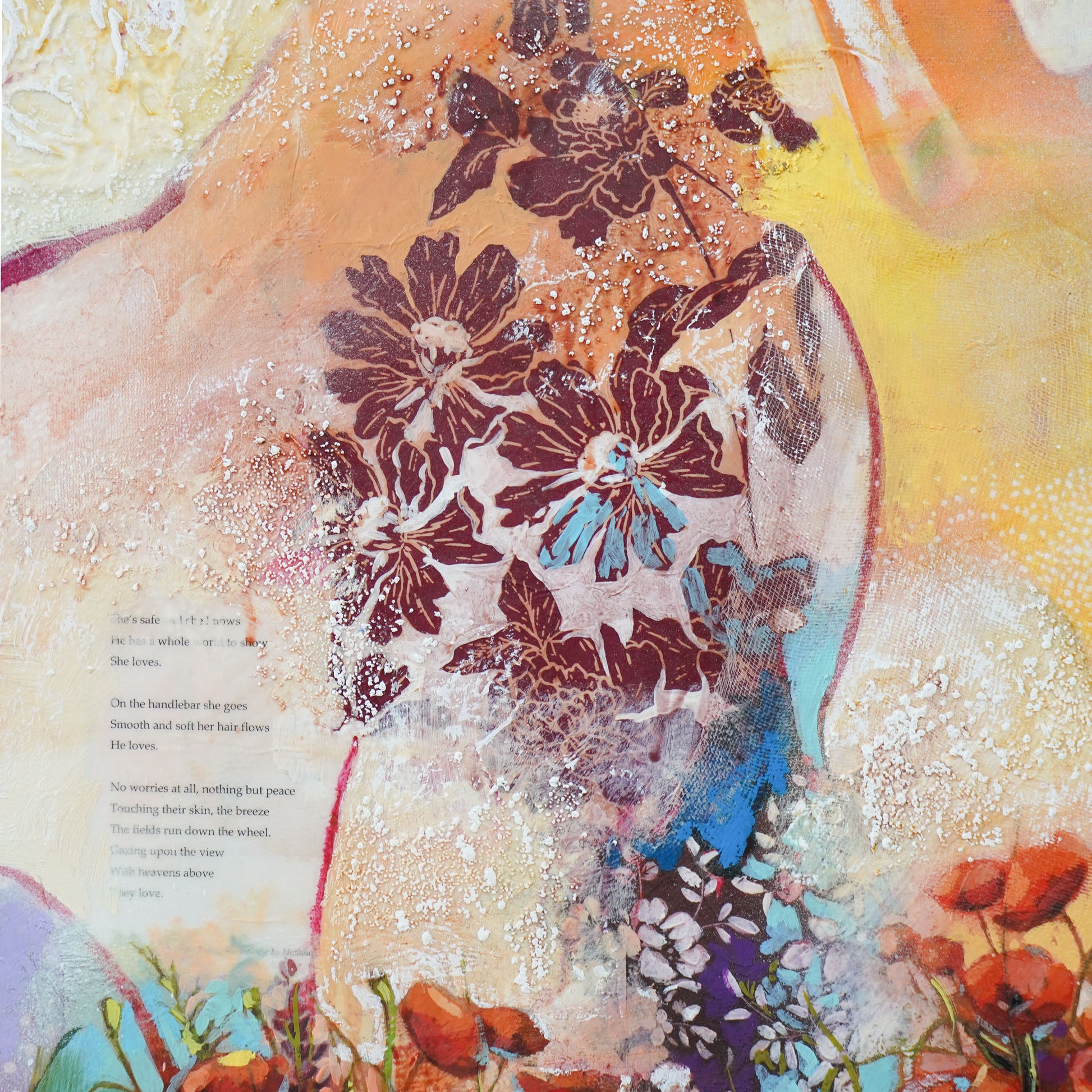 This piece is truly meaningful regarding my journey. You are a true inspiration for me. I can feel many emotions in this masterpiece! Butterflies are following the light, the sun, the positive energy! I love the way you paint your subjects, the way you include mixed media, the texture, etc... When I see your paintings, I see beauty, love, freedom and a huge feeling of serenity. Your art brings me peace into my heart anf heal my soul... many thanks Esther to do what you do. I can't wait to see more into your bright future! xx