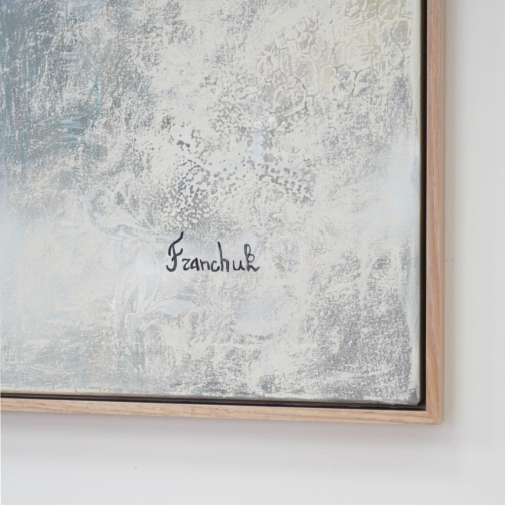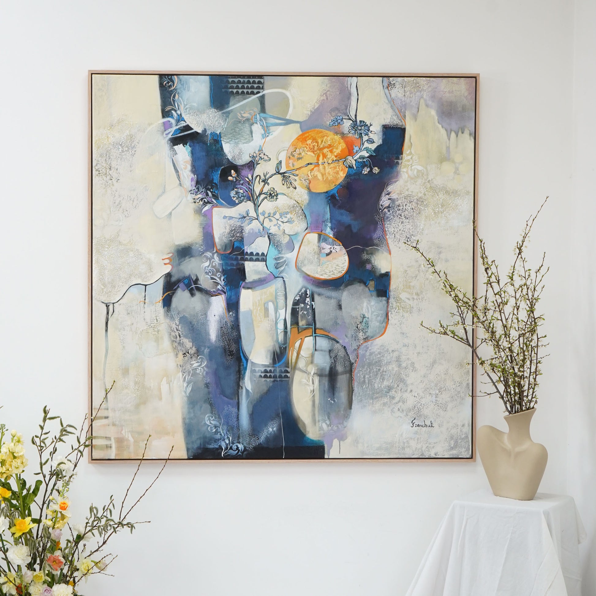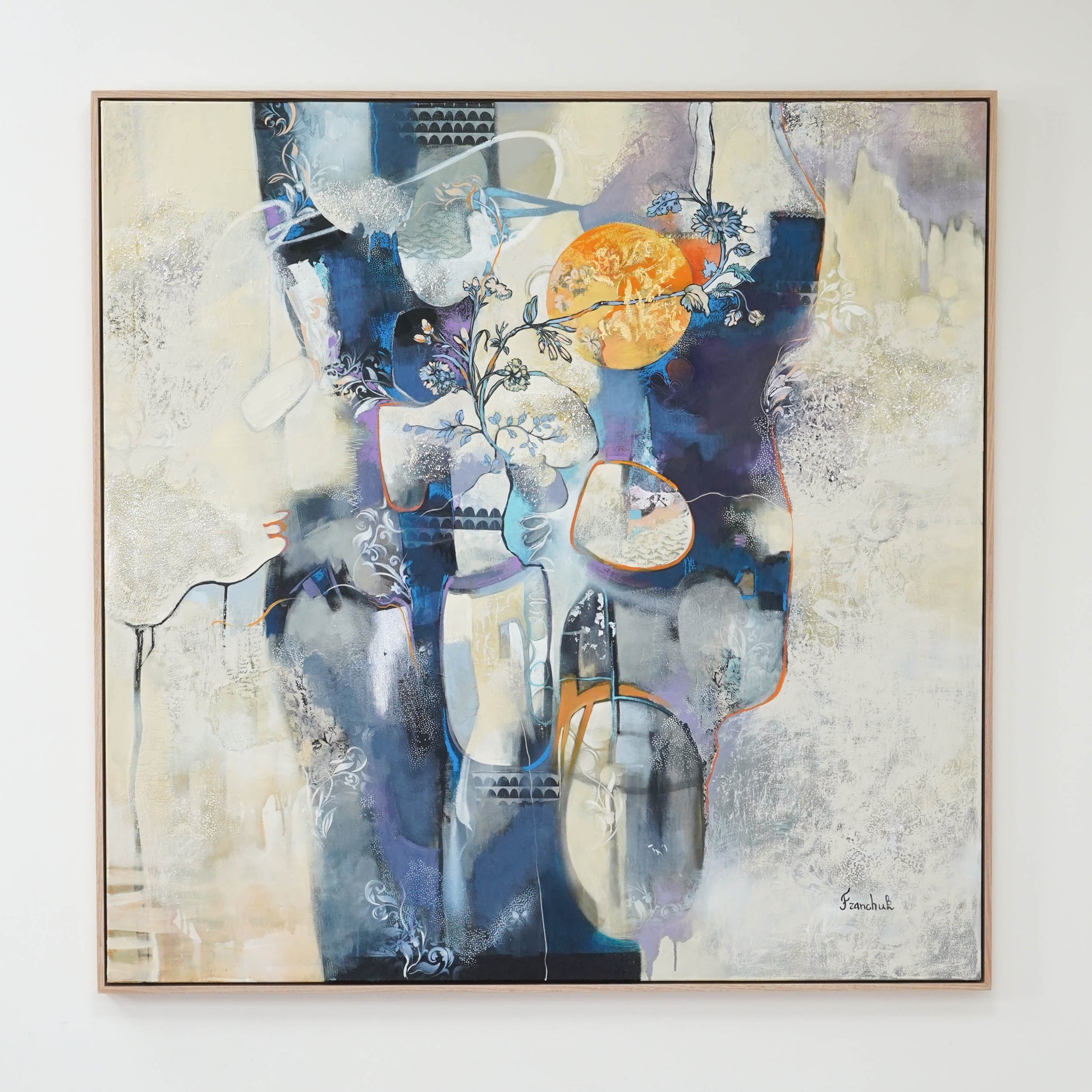 48 x 48" / 122 x 122cm Mixed Media Oil Painting on Gallery Wrapped Canvas, framed in white oak floater frame, 2025