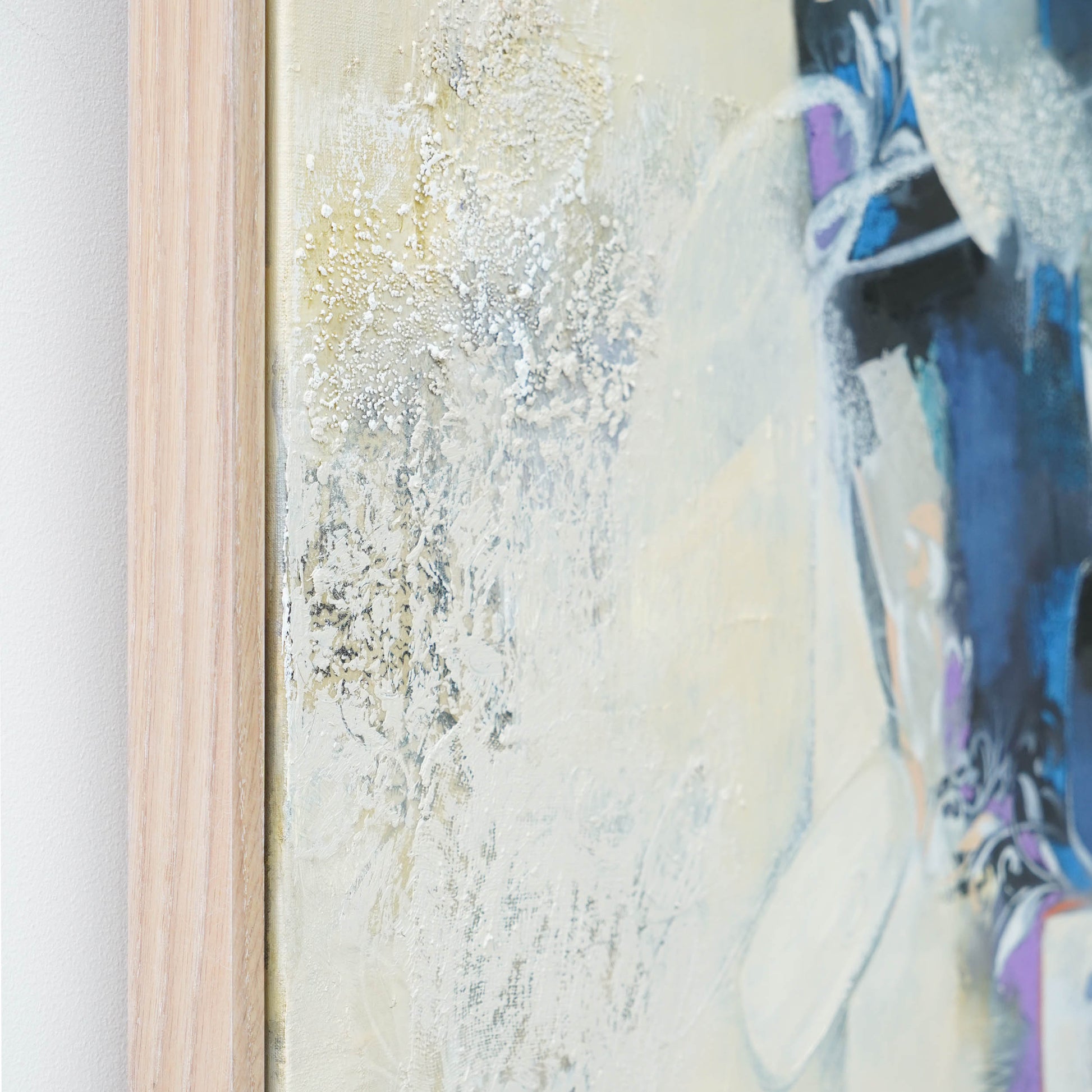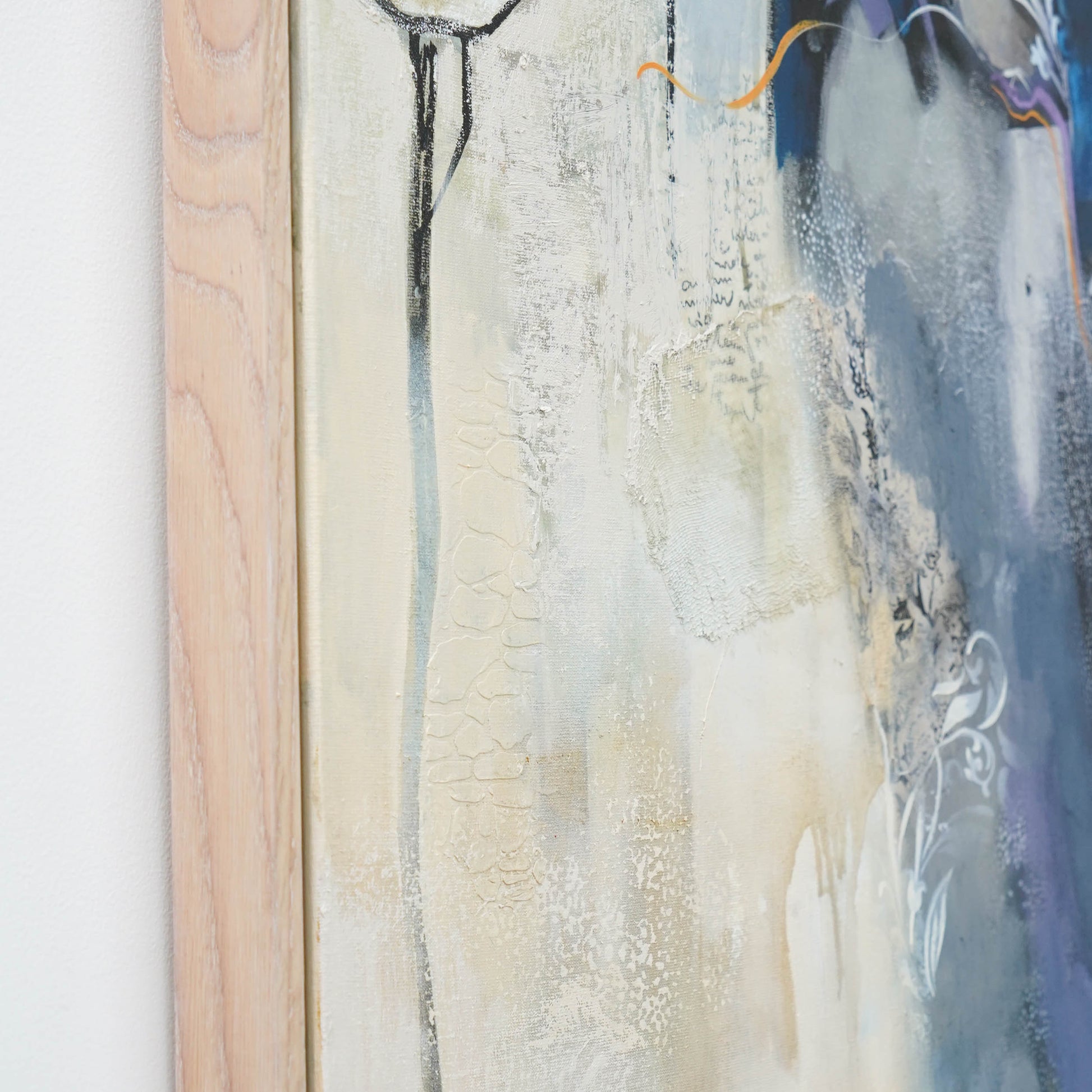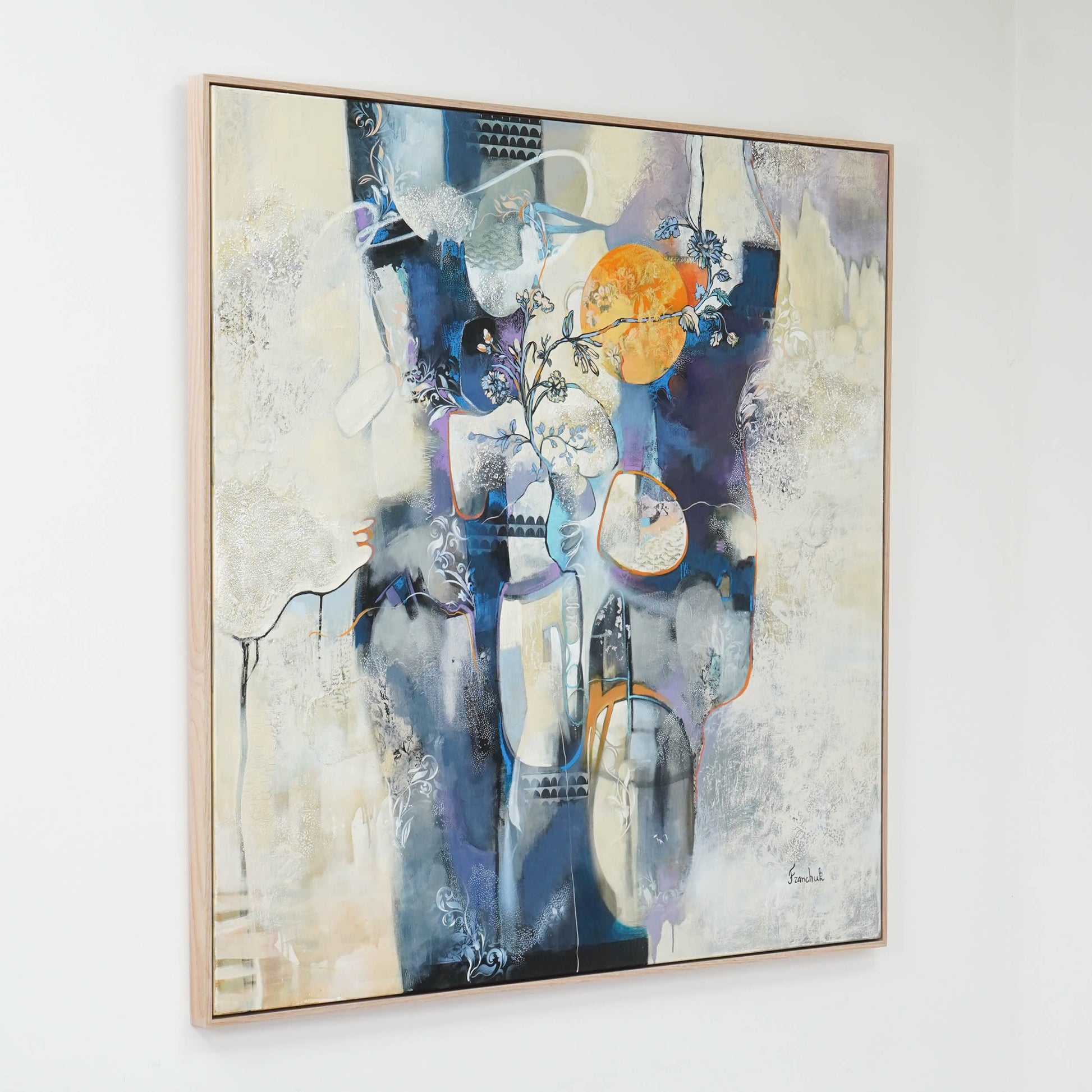 48 x 48" / 122 x 122cm Mixed Media Oil Painting on Gallery Wrapped Canvas, framed in white oak floater frame, 2025