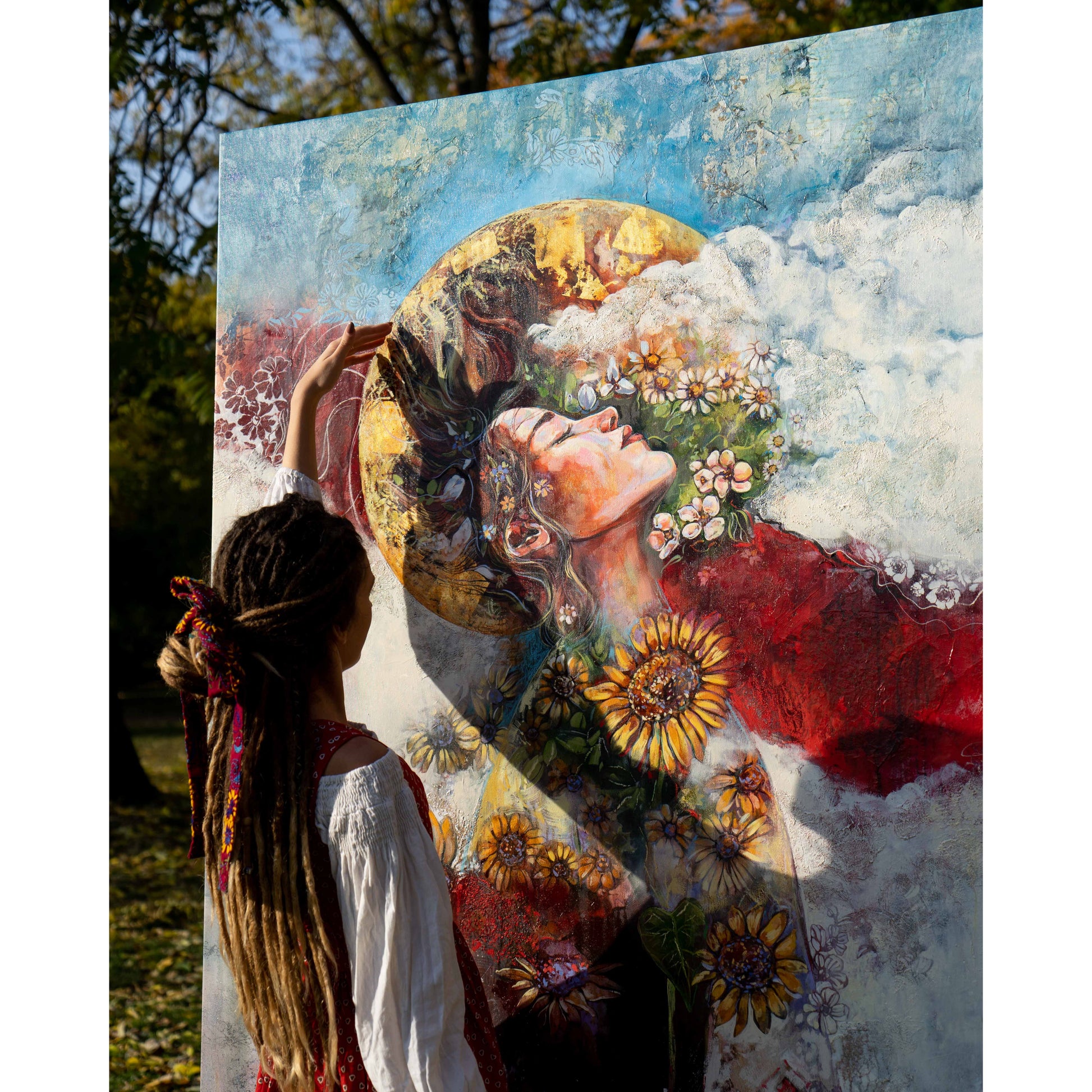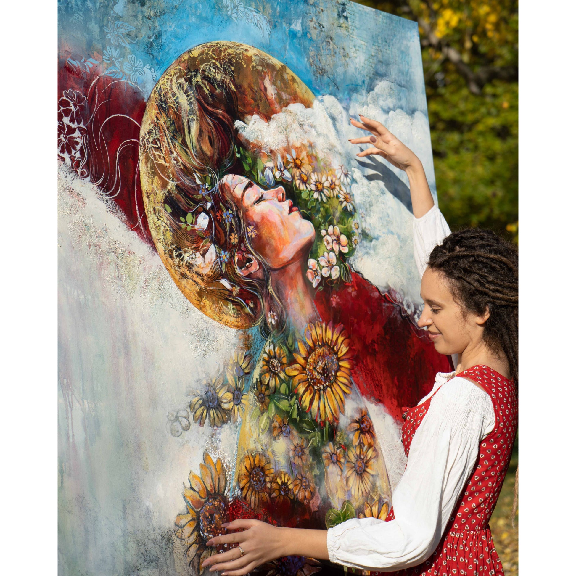 This piece is truly meaningful regarding my journey. You are a true inspiration for me. I can feel many emotions in this masterpiece! Butterflies are following the light, the sun, the positive energy! I love the way you paint your subjects, the way you include mixed media, the texture, etc... When I see your paintings, I see beauty, love, freedom and a huge feeling of serenity. Your art brings me peace into my heart anf heal my soul... many thanks Esther to do what you do. I can't wait to see more into your bright future! xx