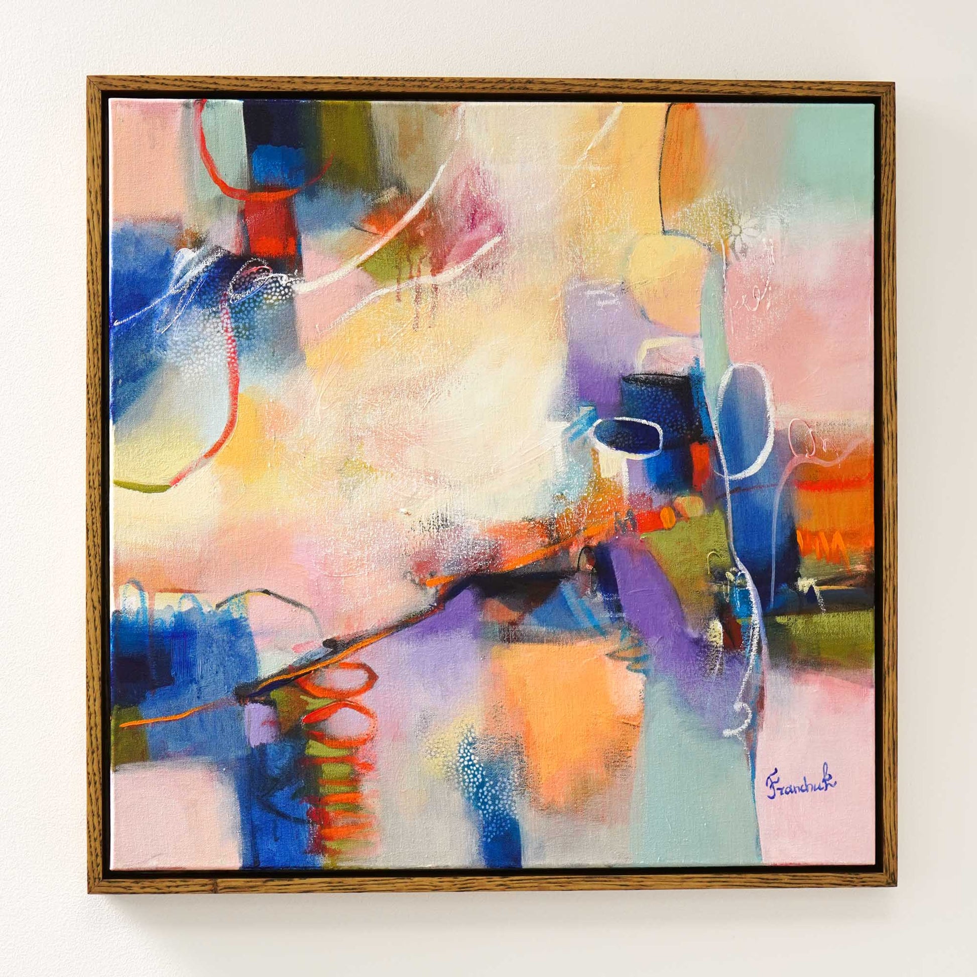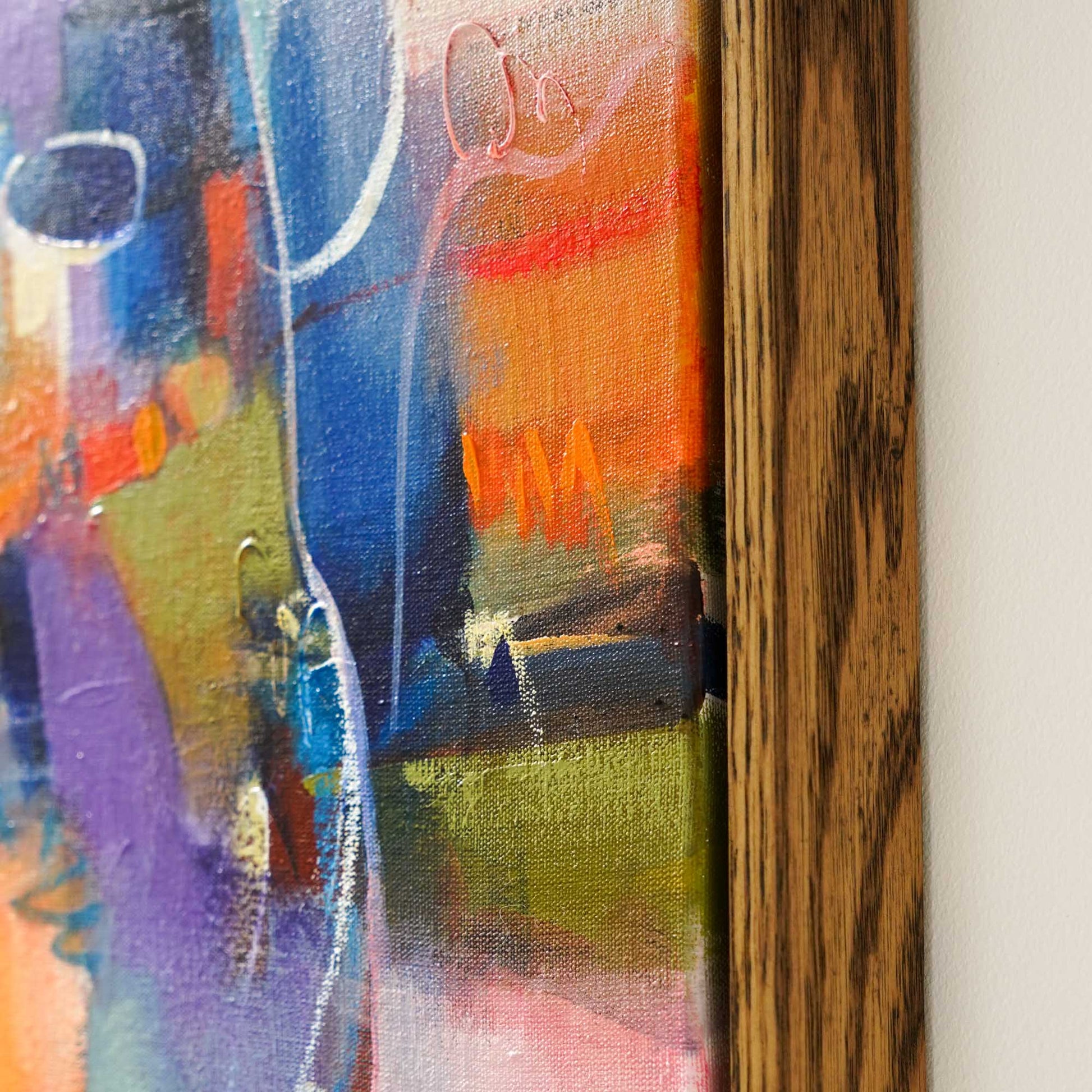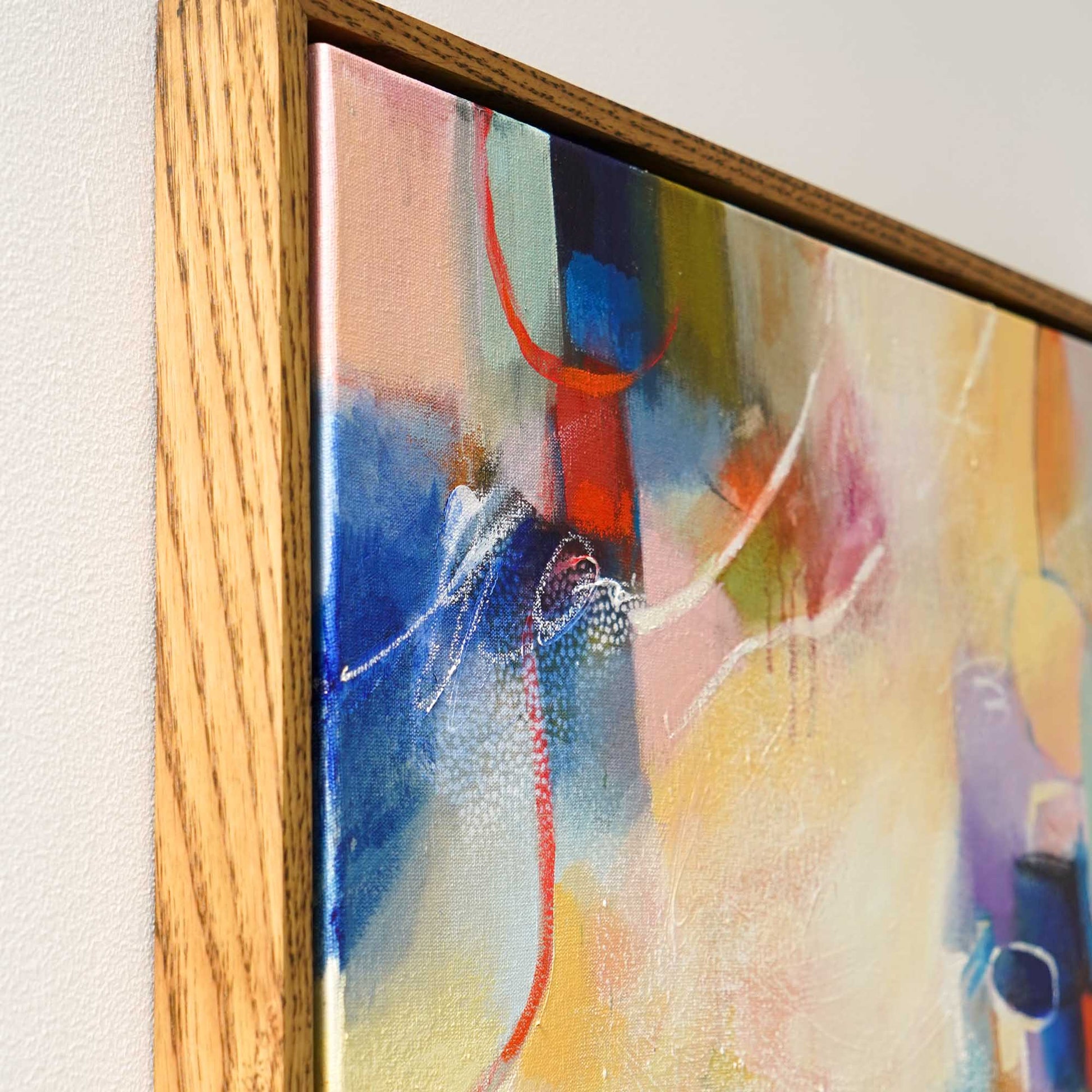 20x20" Mixed Media Oil Painting on Gallery Wrapped Canvas, framed in natural oak, 2024