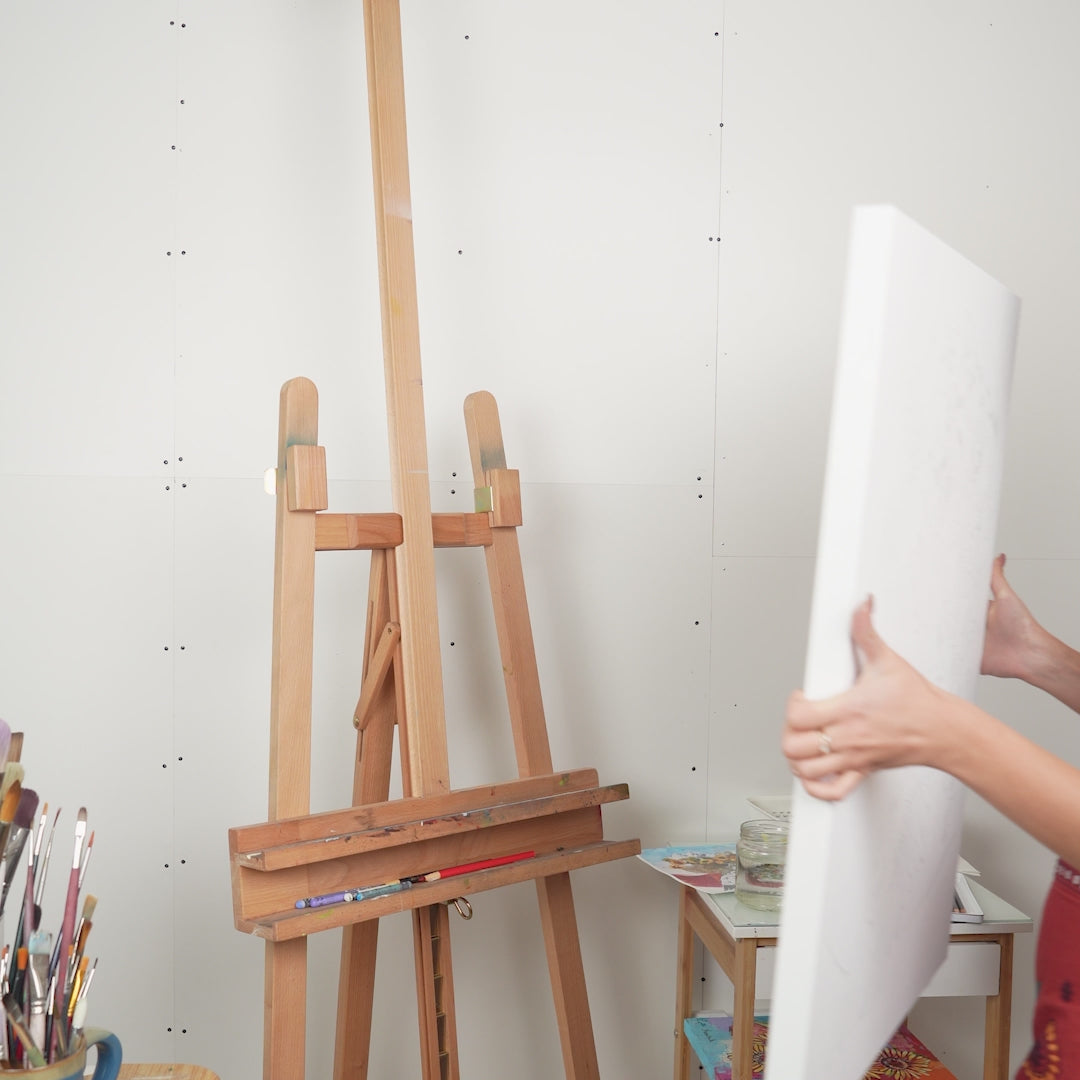 This painting means more than I can explain- after the death of my husband, I purchased a new, smaller, much less “grand” home. I’ve been working hard to make it feel like home, and when I saw this painting (coincidentally titled “Dwelling Place”), I knew it was just what I needed to complete my cozy entryway. The colors are happy, yet peaceful, and I love the way it greets me and everyone who walks through the door. I was impressed with the speed of delivery as well as the packaging of the painting. Esther also provided stretching/ framing advice, and the process was easier and less expensive than I’d anticipated. I am thrilled with every aspect of this purchase!