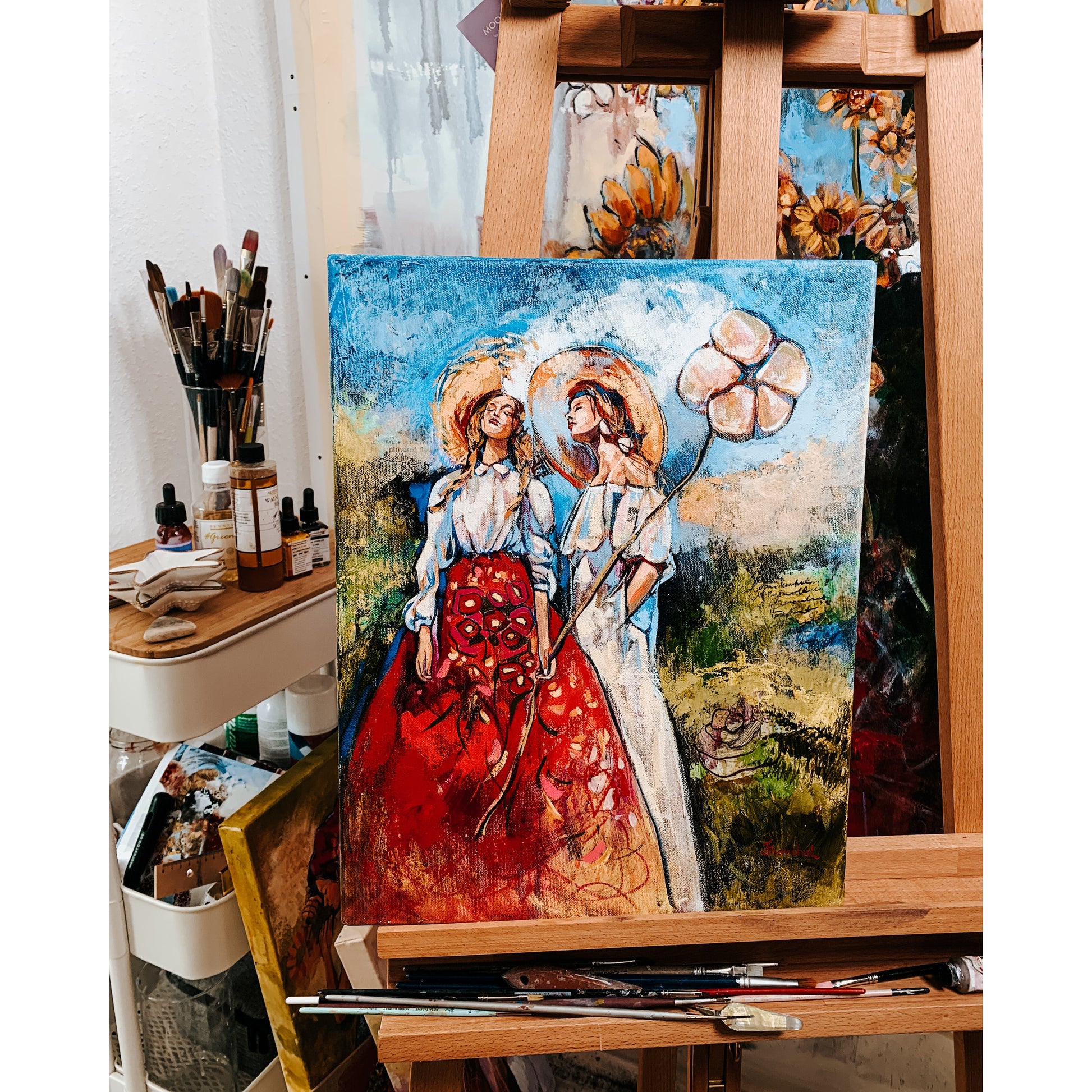 I completely fell in love with this painting by the amazingly talented artist Esther Franchuk when I first saw it on her website. I kept coming back to it and pausing and smiling. I ordered it and was delight That it arrived so carefully packaged. It is even more beautiful in person. I love it so much! Thank you Esther, for your beautiful work and the love that you put into it.