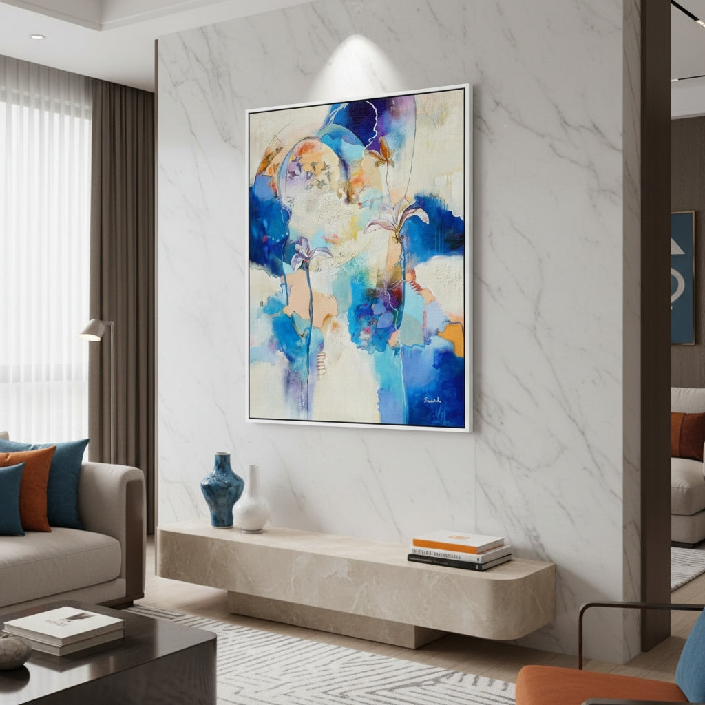 I am now the proud owner of a stunning abstract masterpiece by Esther Franchuk. The artwork caught my eye straight away. I had seen glimpses of it in numerous YouTube videos on Esthers channel, shown in exhibition spaces, with people viewing it, walking up close, and inspecting its details. When I discovered the artwork was for sale, I committed.