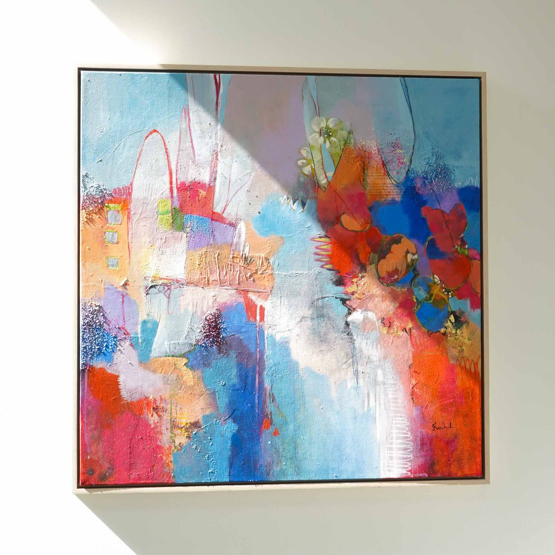 This painting means more than I can explain- after the death of my husband, I purchased a new, smaller, much less “grand” home. I’ve been working hard to make it feel like home, and when I saw this painting (coincidentally titled “Dwelling Place”), I knew it was just what I needed to complete my cozy entryway. The colors are happy, yet peaceful, and I love the way it greets me and everyone who walks through the door. I was impressed with the speed of delivery as well as the packaging of the painting. Esther also provided stretching/ framing advice, and the process was easier and less expensive than I’d anticipated. I am thrilled with every aspect of this purchase!